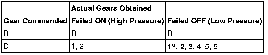a Reverse is available if the solenoid circuit failed causing transaxle solenoid power control solenoid to remove voltage to all solenoids.b No engine braking.Shift Solenoid E (SSE)