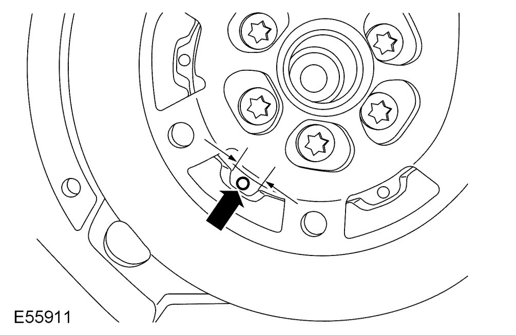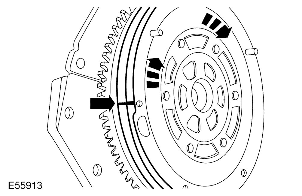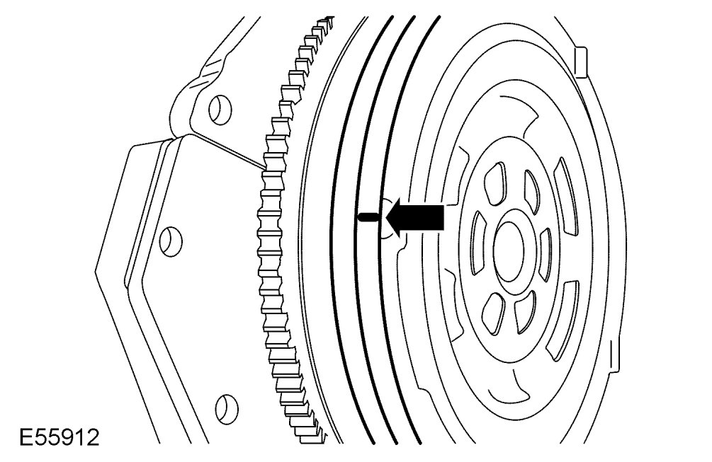 14. Place a reference mark on the secondary mass of the dual mass flywheel.