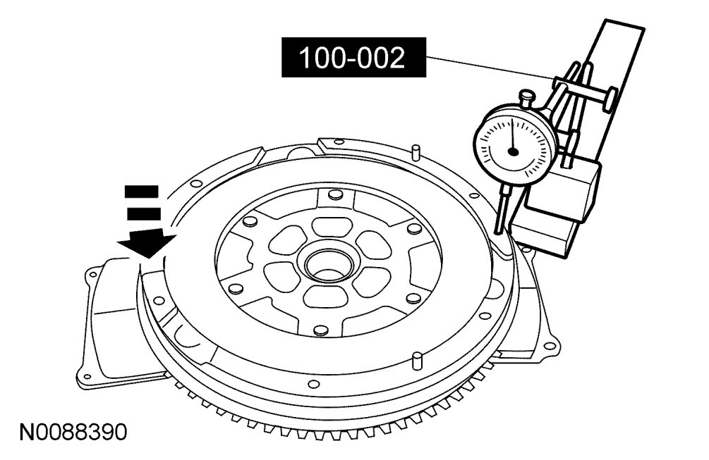 - Repeat this measurement at 120 degree intervals around the dual mass flywheel and note any deflection. If the deflection exceeds 1.5 mm (0.060 in) at any point, install a new dual mass flywheel.