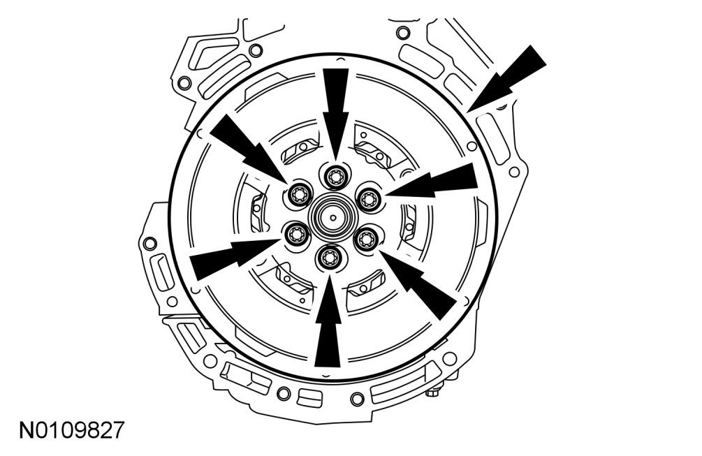 NOTE:Install new dual mass flywheel retaining bolts.