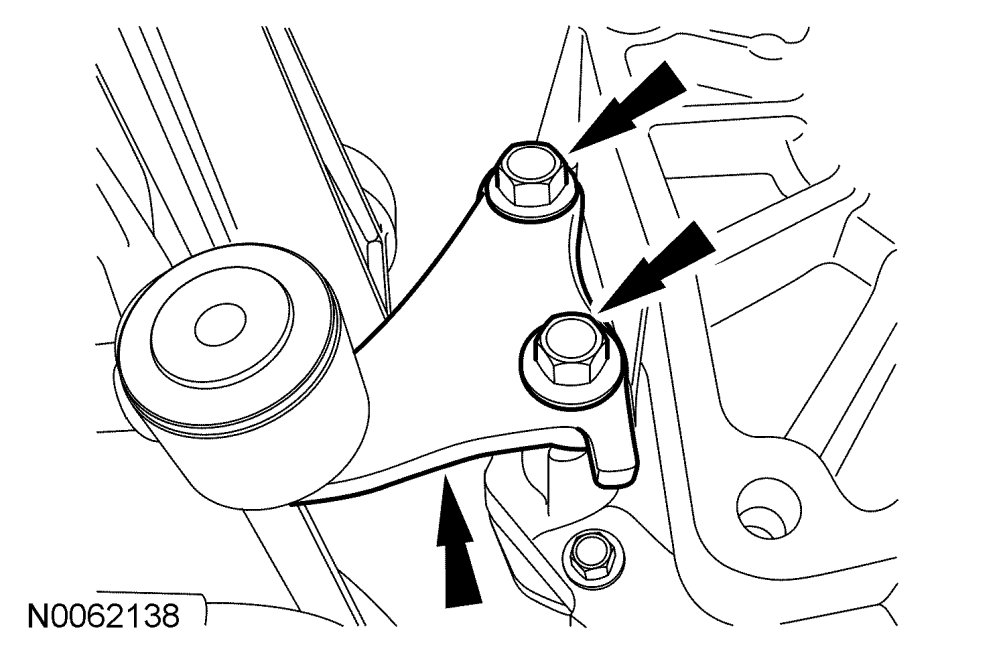 12. Remove the 2 bolts from the lower transmission insulator and retainer bracket.