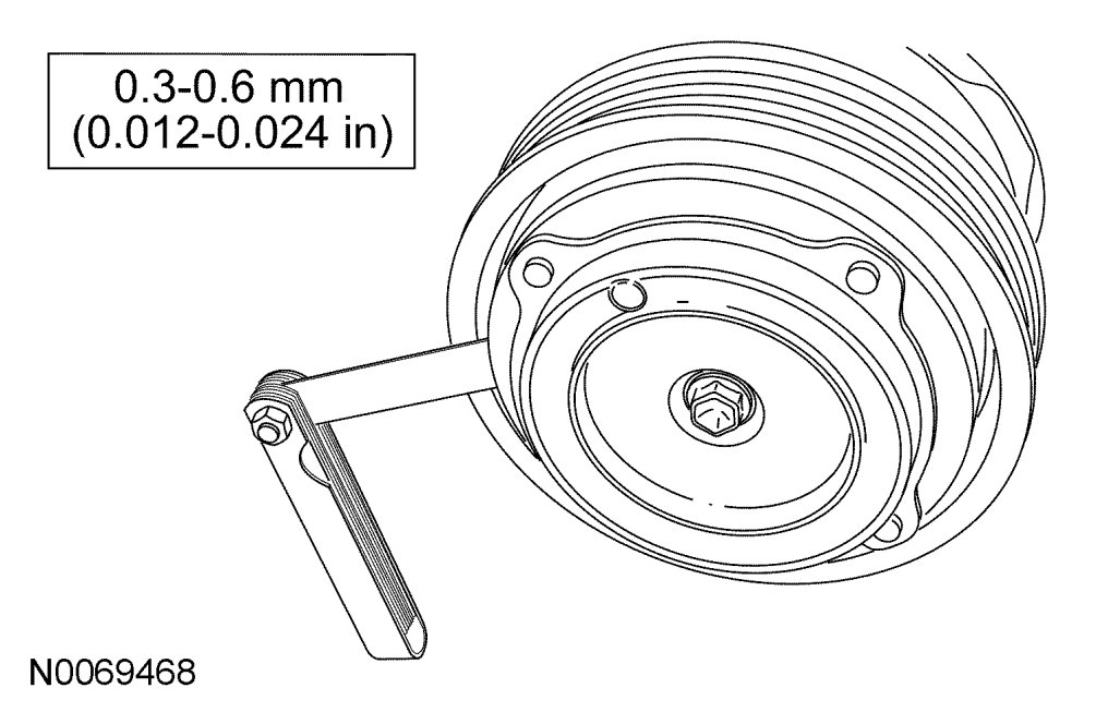 10. Measure and adjust the clutch air gap by removing or adding A/C clutch disc and hub spacers.