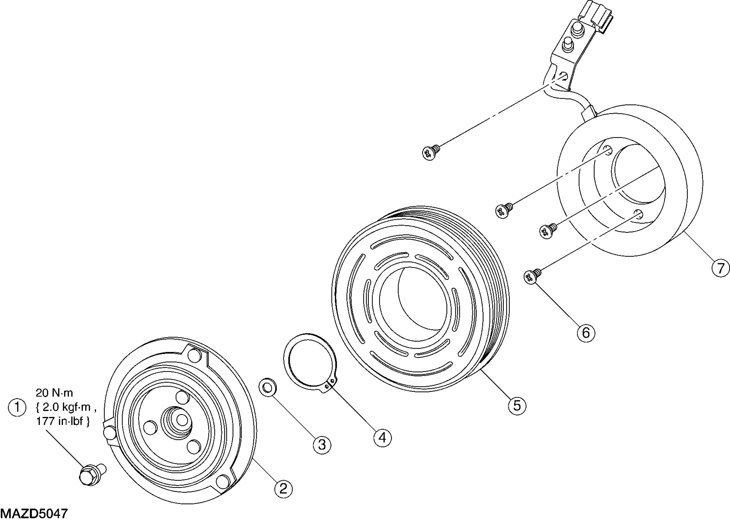 7. Remove the A/C clutch field coil.