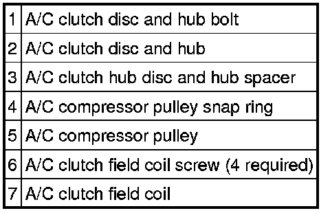 NOTE:A new A/C compressor may come equipped with a clutch and pulley. If not, the A/C clutch components should be reused unless obvious signs of damage are found.