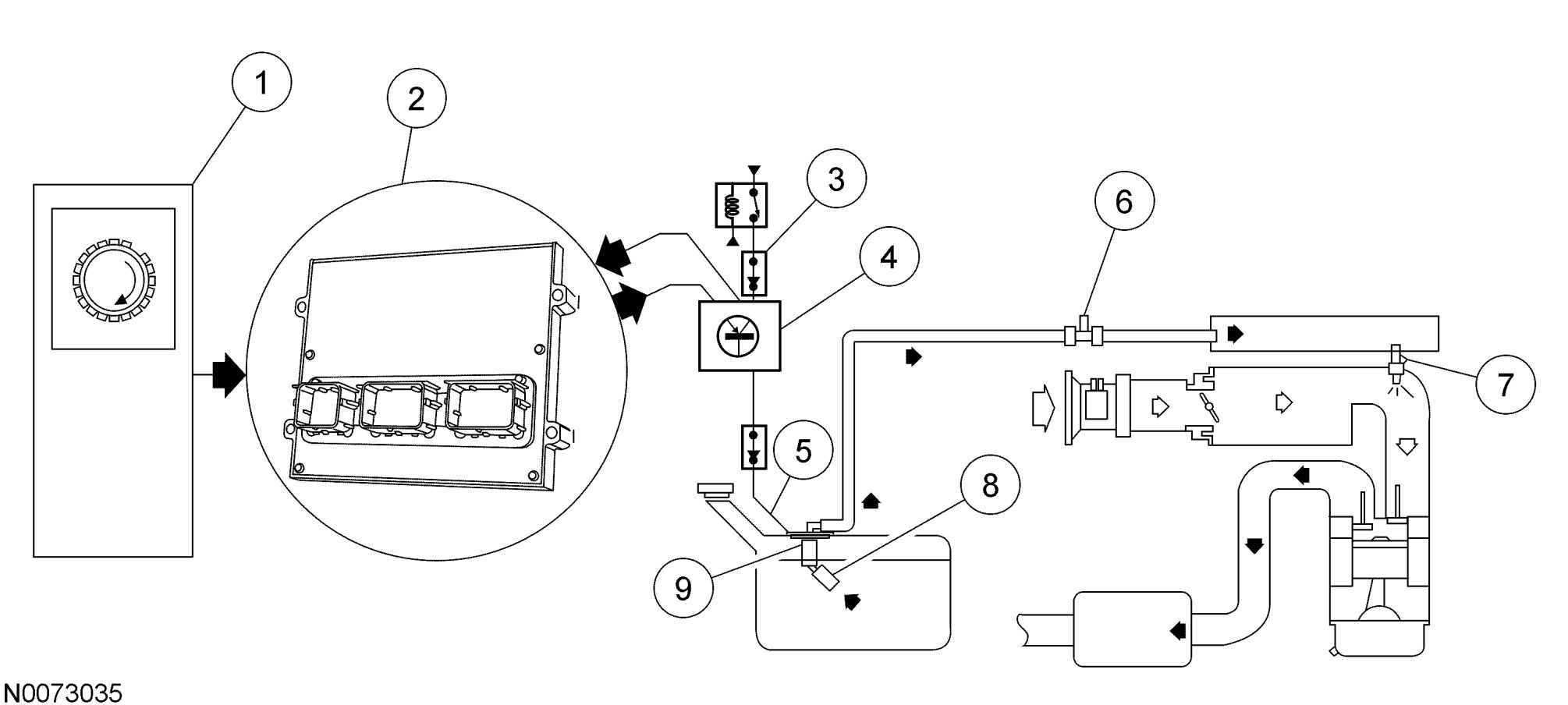 4. The fuel filter assembly is located between the fuel pump (tank) and the pressure test point (Schrader valve) or injectors. This filter may be a lifetime fuel filter located in the fuel pump module or an external 3-port in-line filter that allows clean fuel to return to the fuel tank. A new filter may be installed for the external filter.