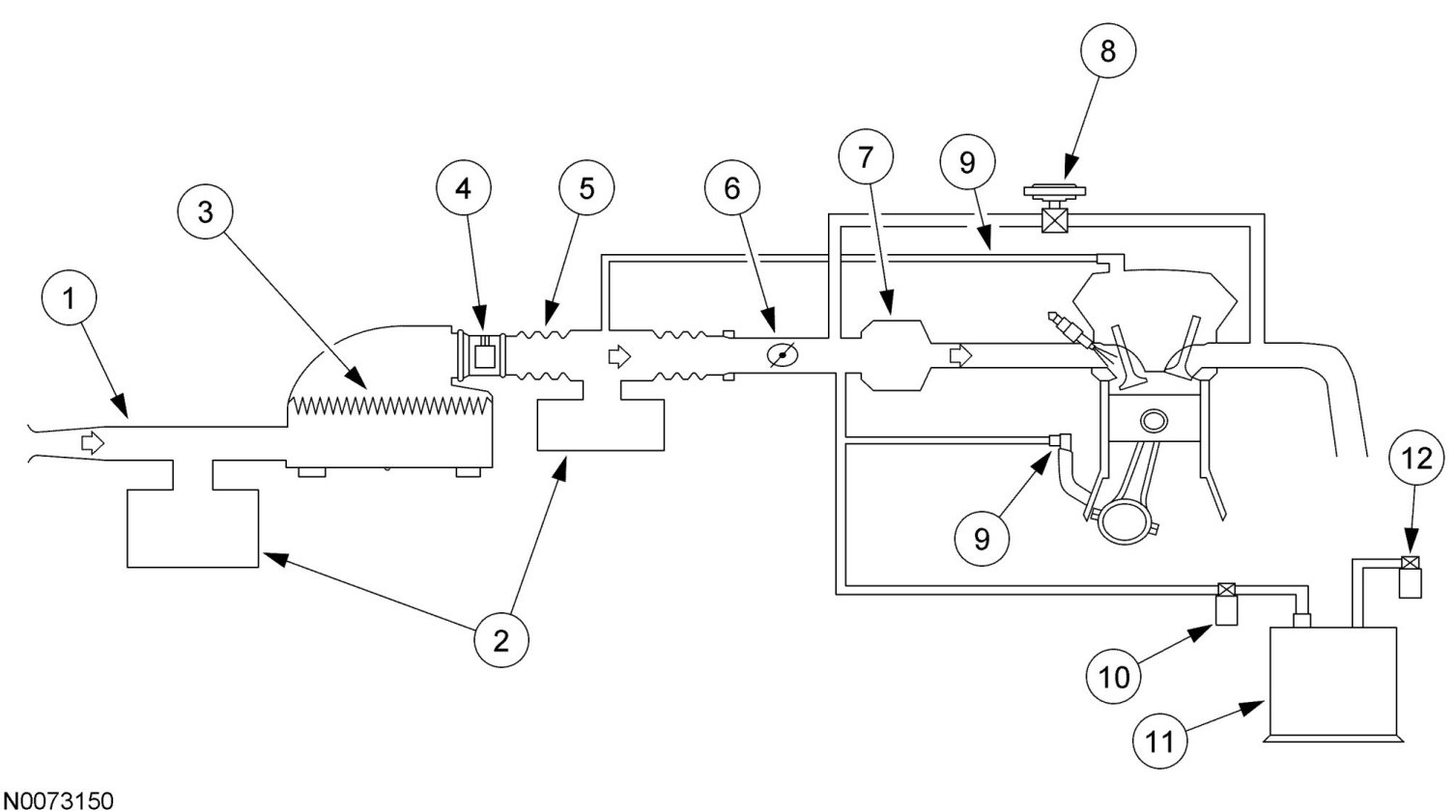 5. The FTP sensor monitors the fuel tank pressure during engine operation and continuously transmits an input signal to the PCM. During the EVAP monitor testing, the FTP sensor monitors the fuel tank pressure or vacuum bleed-up.