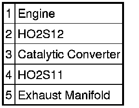 The purpose of the exhaust system is to convey engine emissions from the exhaust manifold to the atmosphere. Engine exhaust emissions are directed from the engine exhaust manifold to the catalytic converter through the front exhaust pipe. A HO2S is mounted on the front exhaust pipe before the catalyst. The catalytic converter reduces the concentration of CO, unburned HCs, and NOx in the exhaust emissions to an acceptable level. The reduced exhaust emissions are directed from the catalytic converter past another HO2S mounted in the rear exhaust pipe and then on into the muffler. Finally, the exhaust emissions are directed to the atmosphere through an exhaust tailpipe.