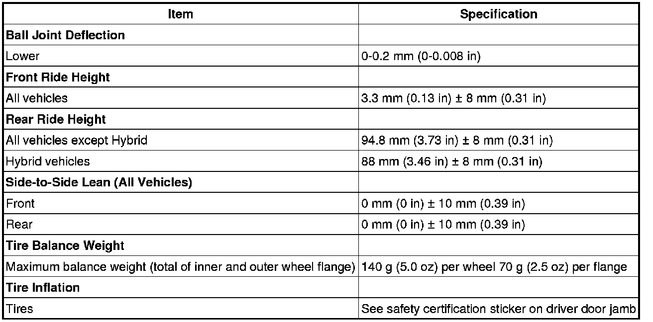 All alignment specifications are with the vehicle fuel tank full.