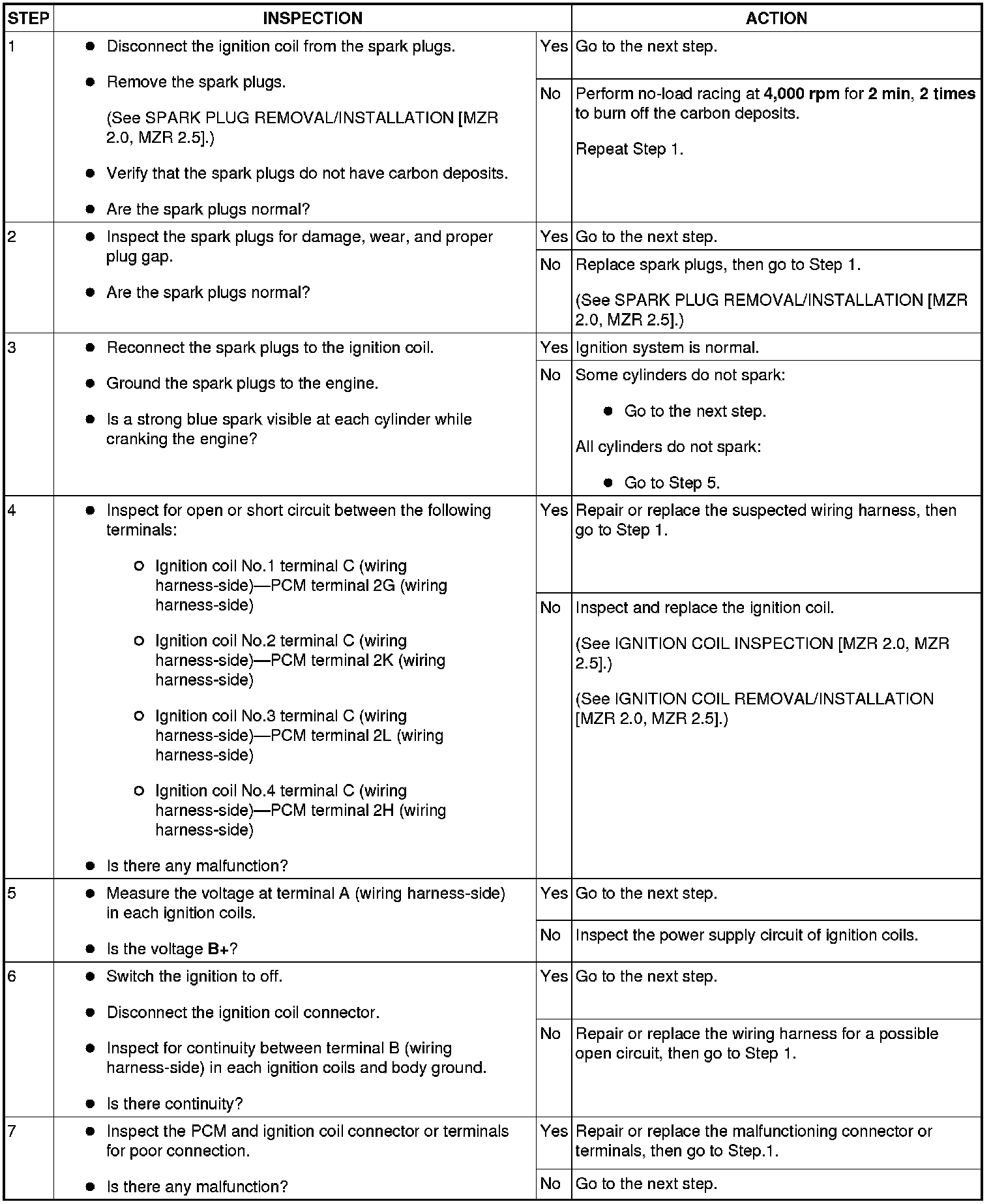 ENGINE CONTROL SYSTEM OPERATION INSPECTION [MZR 2.0, MZR 2.5]