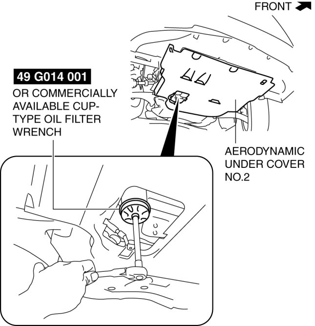 2. Remove the oil filter using the SST or commercially available, cup-type oil filter wrench (67 mm {2.6 in} diameter, 14 sided).