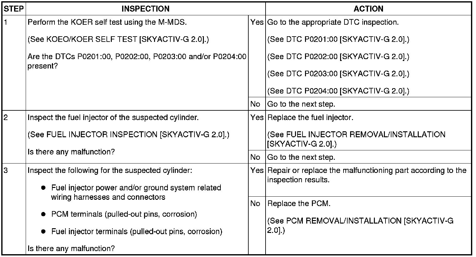 - This inspection has to be performed after the Fuel Injector Operation Inspection.