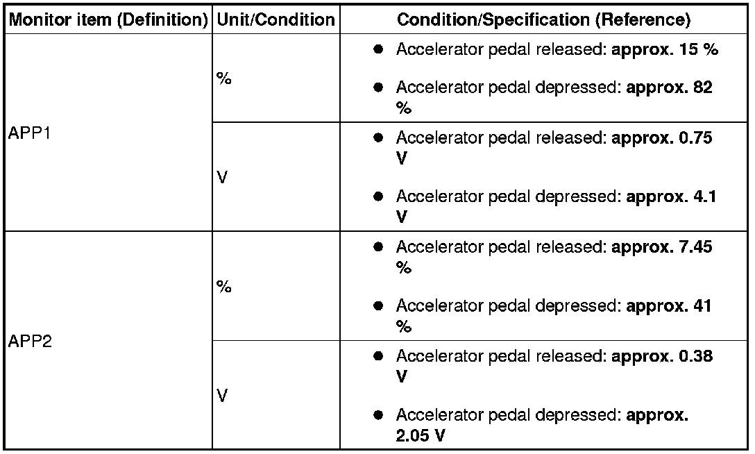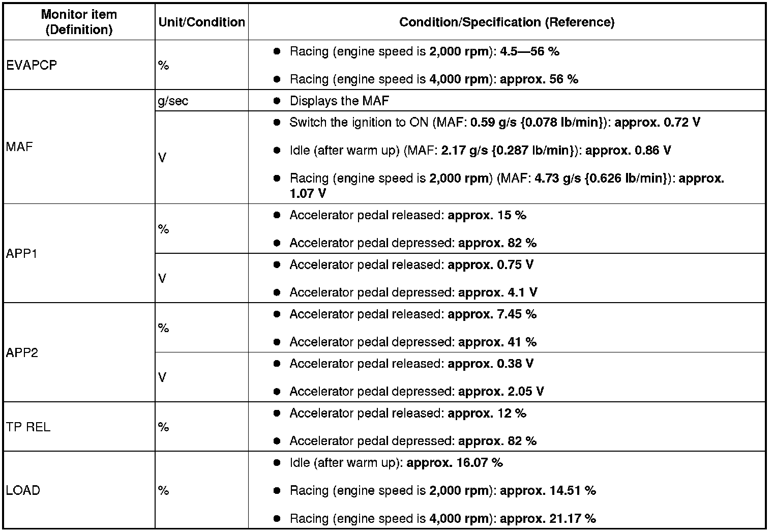 5. Verify that the PID reading is within specification when the accelerator pedal is released.