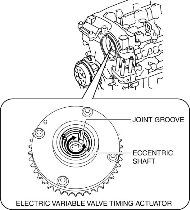 b. Engage the joint on the end of the electric variable valve timing motor with the joint groove on the electric variable valve timing actuator side.