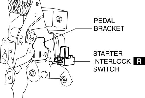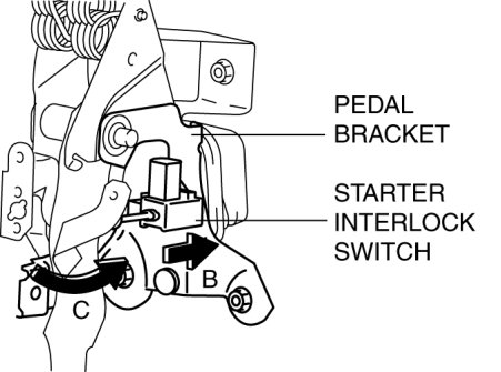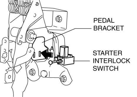 4. Remove the starter interlock switch from the pedal bracket.