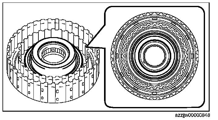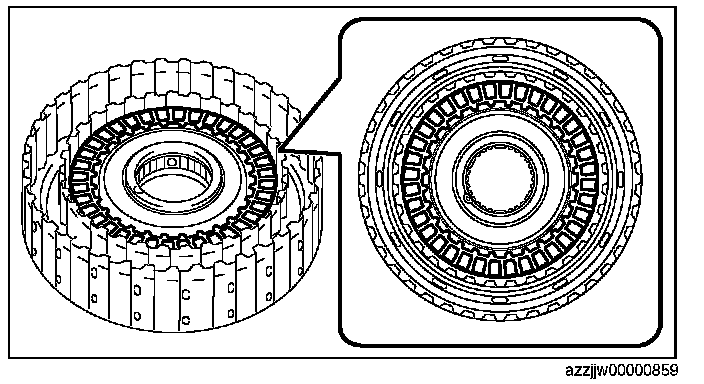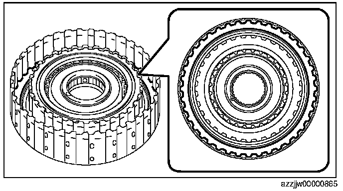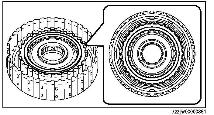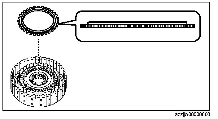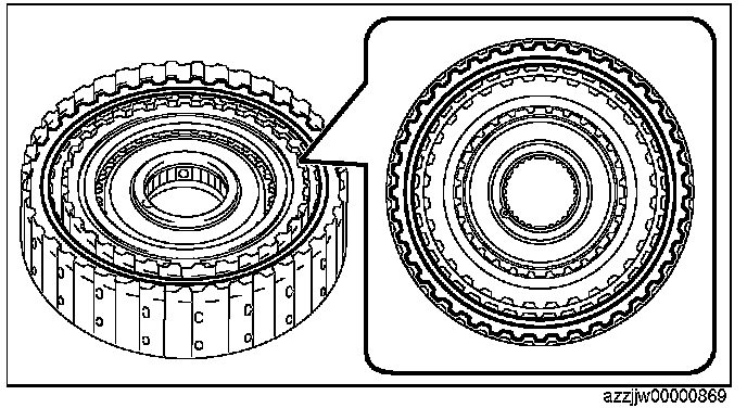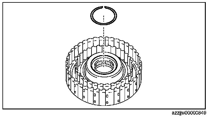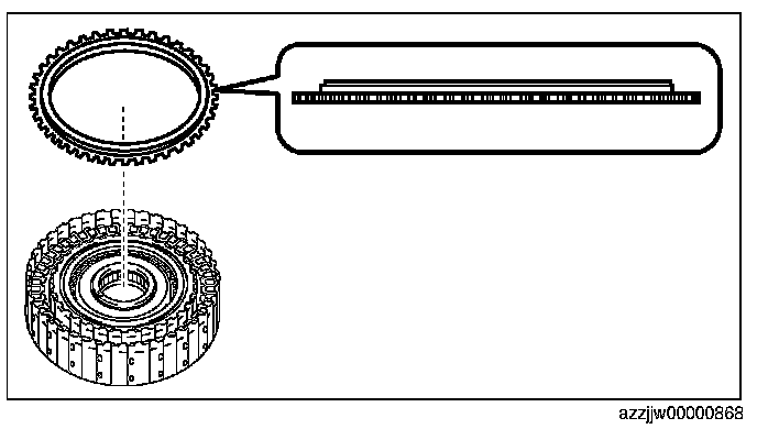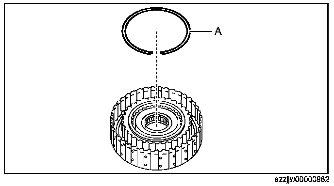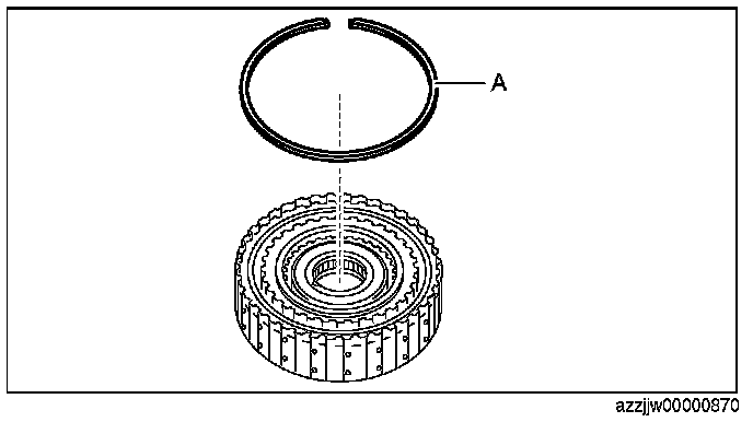 - Assemble so that the end gap of the snap ring is positioned diagonally opposed to the end gap of the snap ring for the high clutch.