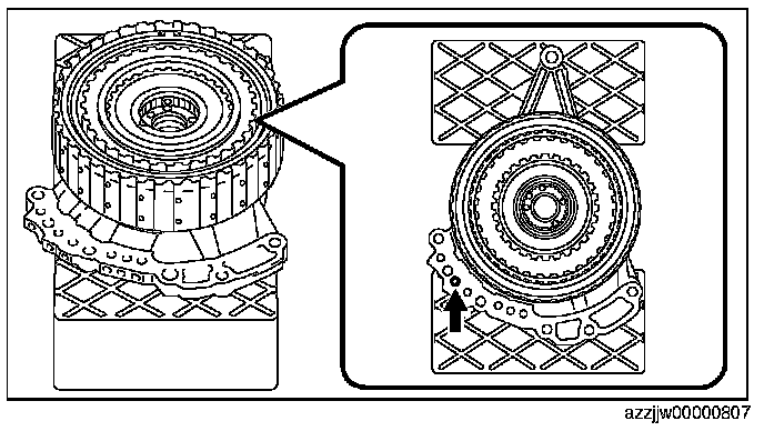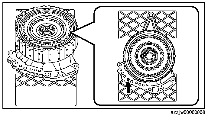 4. Blow compressed air into the oil passage shown in the figure and verify the operation condition of the low clutch.