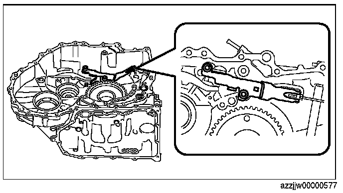 3. Rotate the parking shift lever component (manual plate component) as shown in the figure, and align the detent bracket component with the groove of the manual plate component.