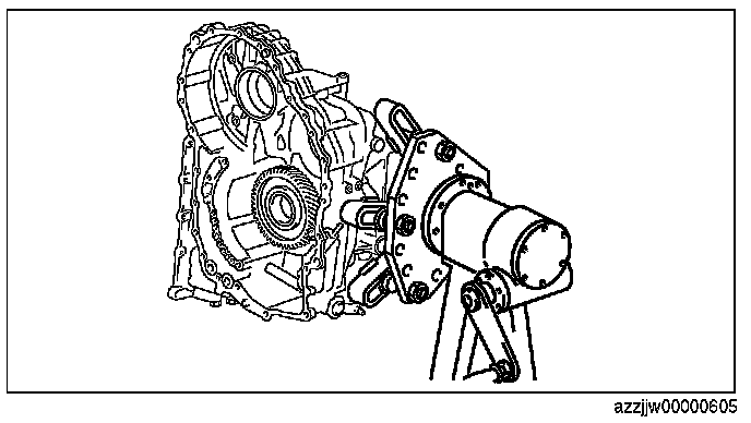 - Because the front planetary gear will drop if the end cover side is pointed downward before assembling the locknut, rotate the engine stand rotation handle, adjust so that the end cover side is situated sideways, and assemble the locknut.