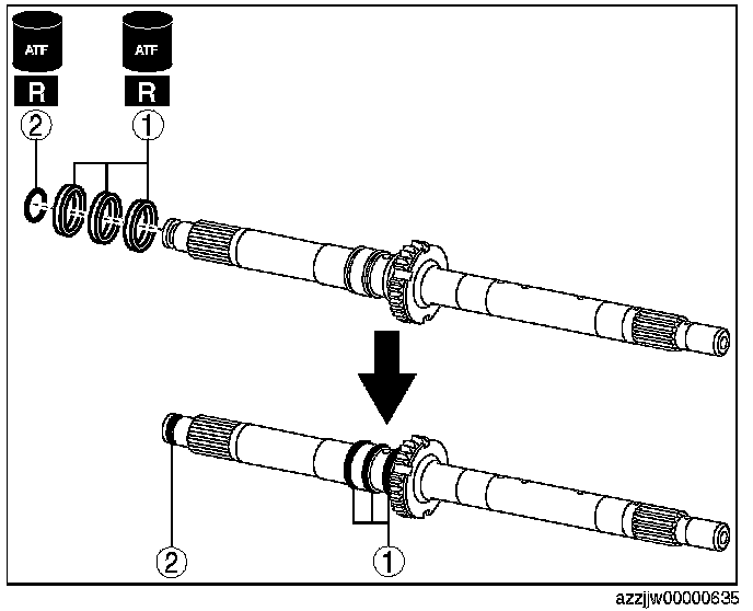 1. Apply ATF (ATF FZ) to the new D-ring and new seal rings.