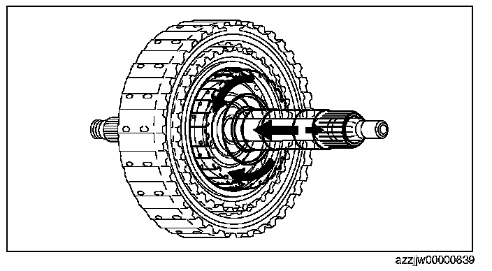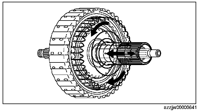 2. While rotating the low clutch hub, engage the splines of each of the low clutch drive plates one by one, and assemble.
