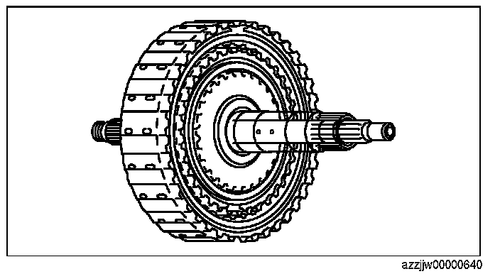 38. Assemble together the clutch component, turbine shaft, high clutch hub, low clutch hub, and thrust needle bearing using the following procedure: