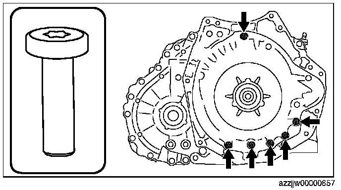 NOTE: Bolt size: M8x1.25 bolt, length to approx. 21 mm {0.83 in} (with sealant applied)