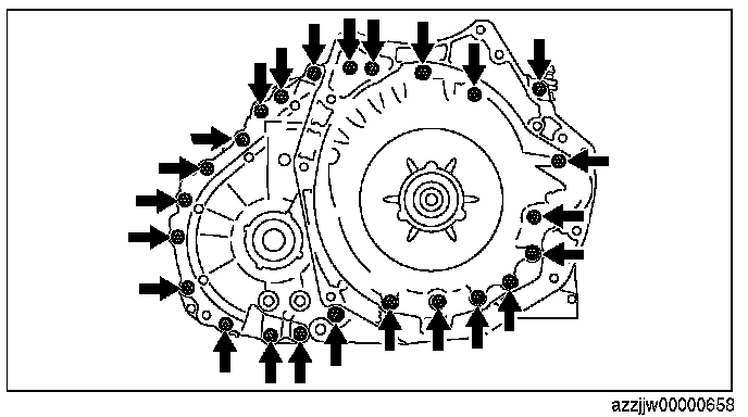 2. Remove any remaining old sealant on the contact surfaces of the transaxle case and converter housing, and degrease the contact surfaces.