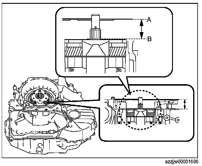 2. To verify that the rear planetary gear is securely assembled, measure the distance shown in the figure.