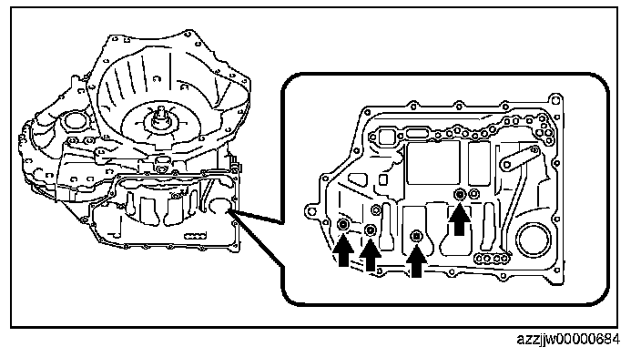 CAUTION: The bolts for the assembly are applied with sealant. If the bolts are reused it could cause ATF leakage, therefore use new bolts.
