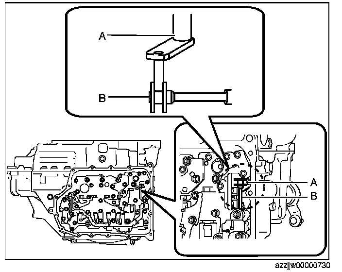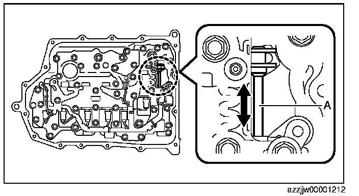 NOTE: If the manual valve is only moved for excessive play on both surfaces of the parking assist lever component and the manual valve, the manual valve is correctly connected to the parking assist lever component.