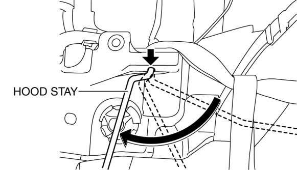 - If the hood stay is not hooked to the hood hole, the hood may fall down. Lightly shake the hood to verify that the hood stay is hooked securely.
