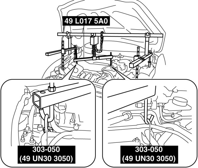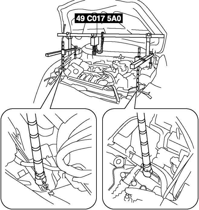 - Install the SST (49 L017 5A0) so that it does not interfere with parts such as the fuel pipe. If the SST (49 L017 5A0) interferes, parts such as the fuel pipe could be damaged.