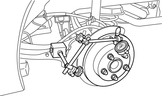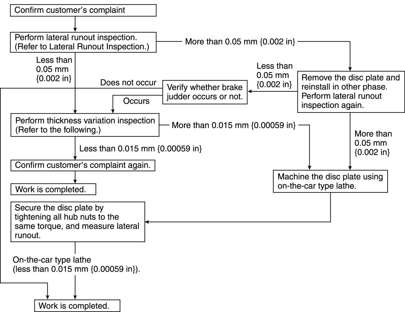 1. If the runout is more than 0.05 mm {0.002 in} at the position 10 mm {0.39 in} from the disc plate edge, uneven wear occurs on the disc plate because the pad contacts the plate unevenly.