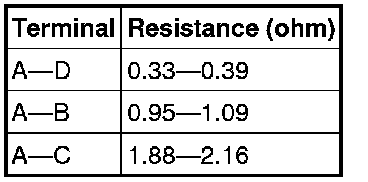 Verify that the resistance between the resistor terminals is as shown in the table.