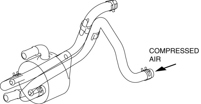 4. Add new ATF from the oil cooler hose outlet and blow 491-882 kPa {5-9 kgf/cm2, 72-127 psi} of compressed air to flush. (Repeat 2 or 3 times)