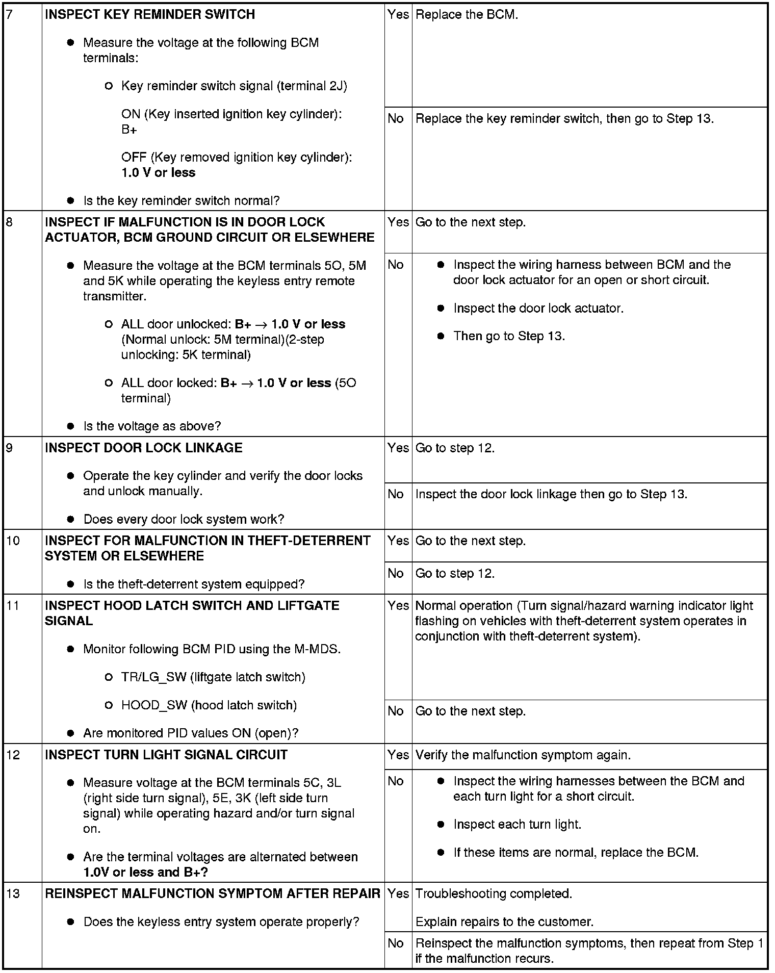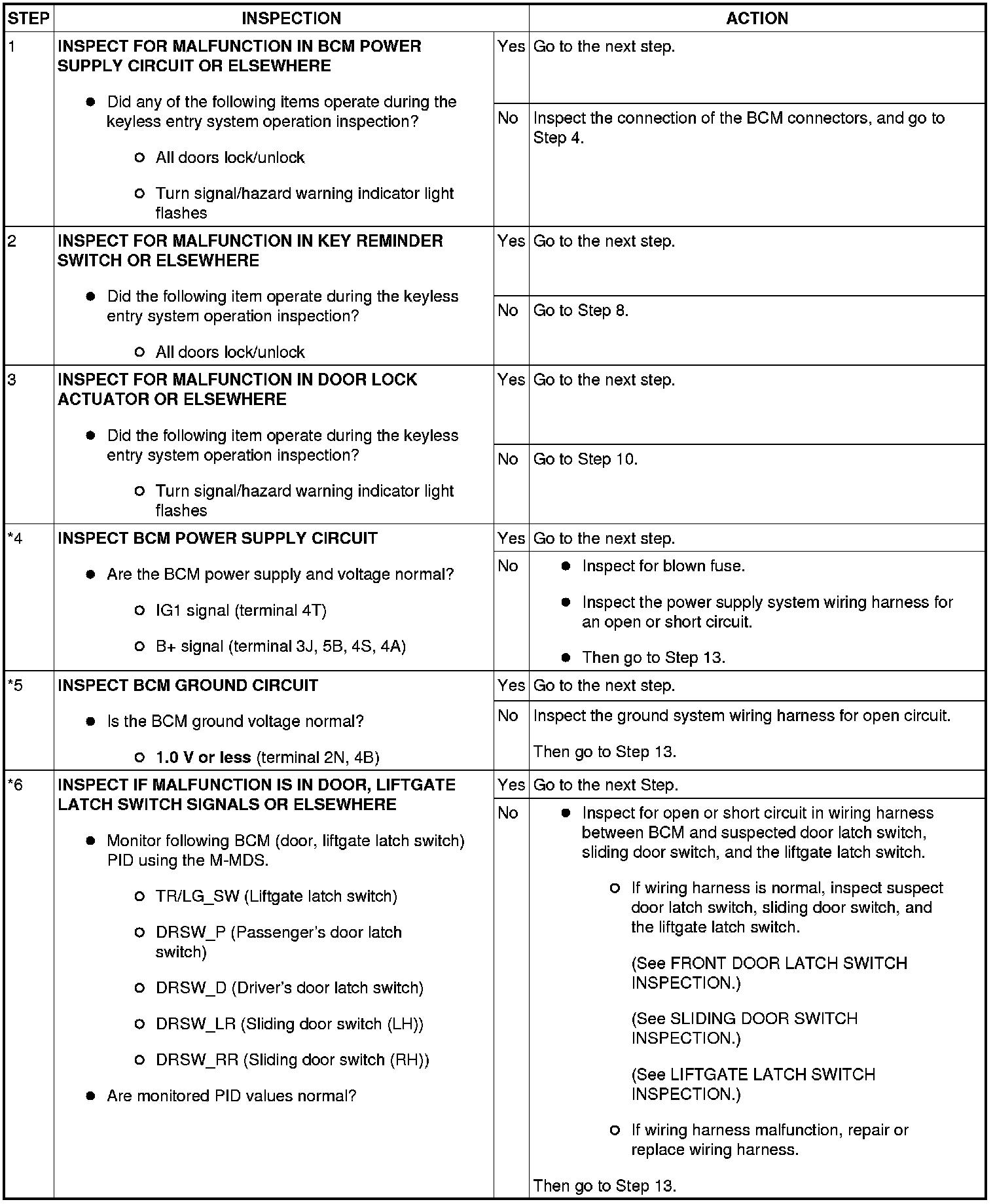 - When performing an asterisked (*) troubleshooting inspection, slightly shake the wiring harness and connectors while performing the inspection to discover whether poor contact points are the cause of any intermittent malfunctions. If there is a problem, verify that the connectors, terminals and wiring harnesses are connected correctly and undamaged.