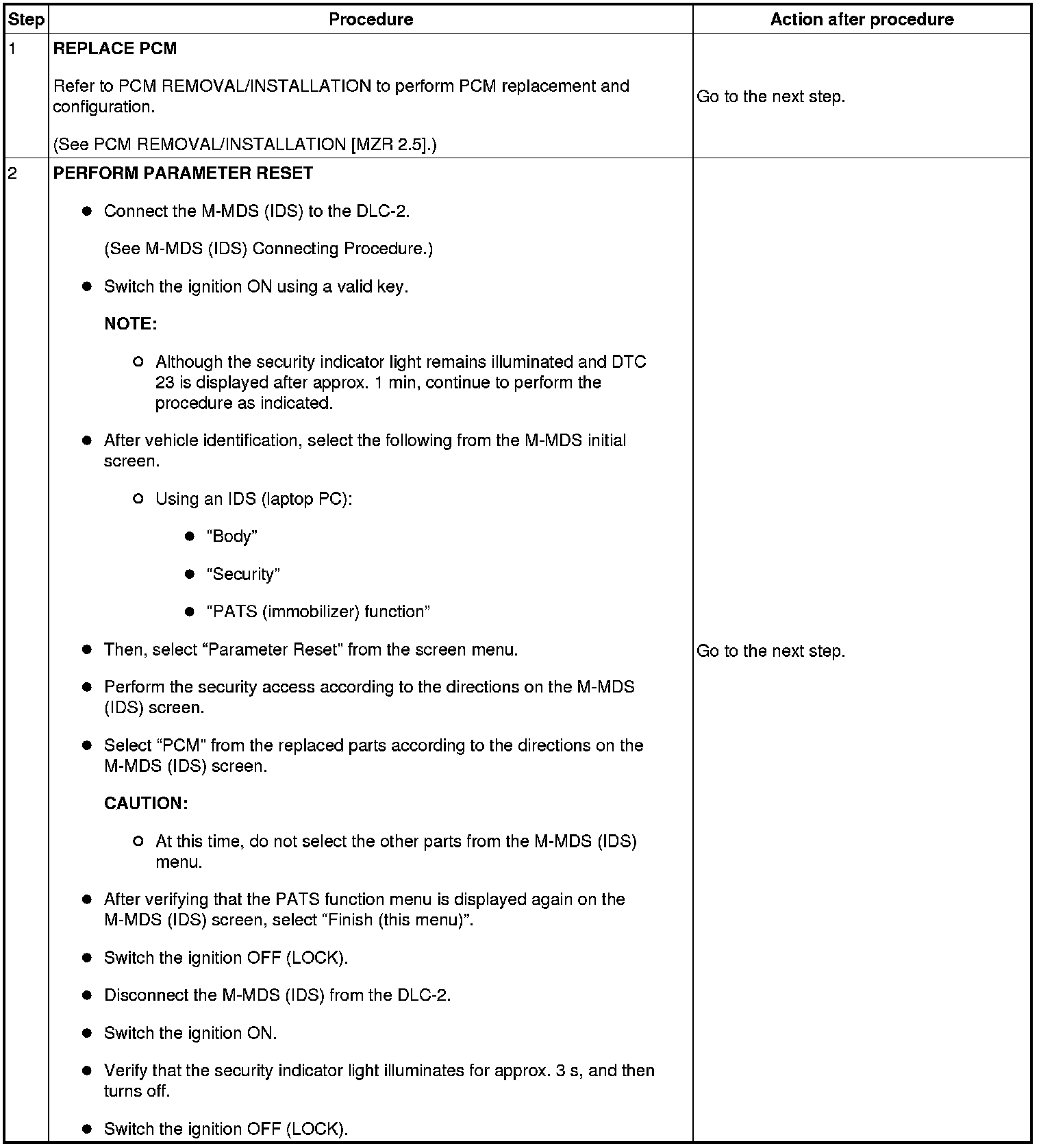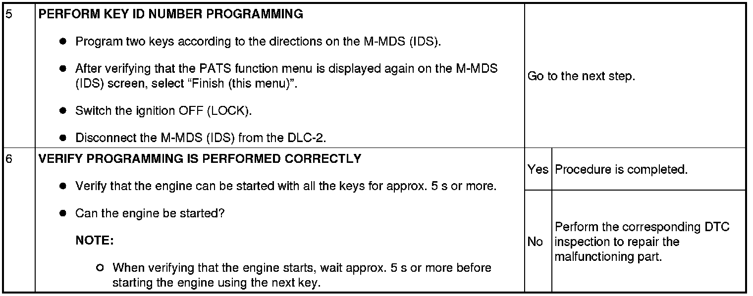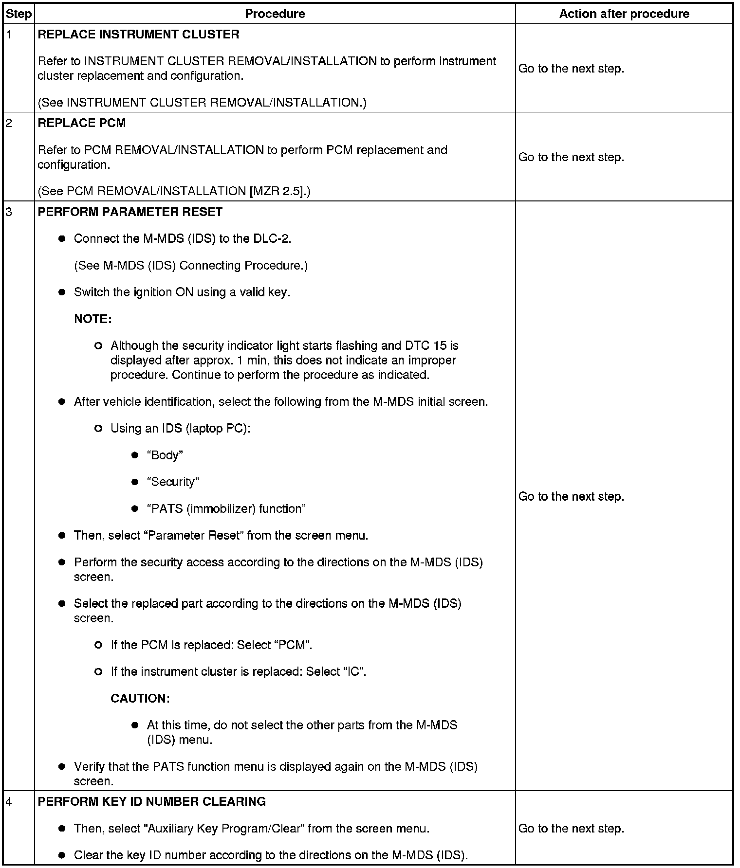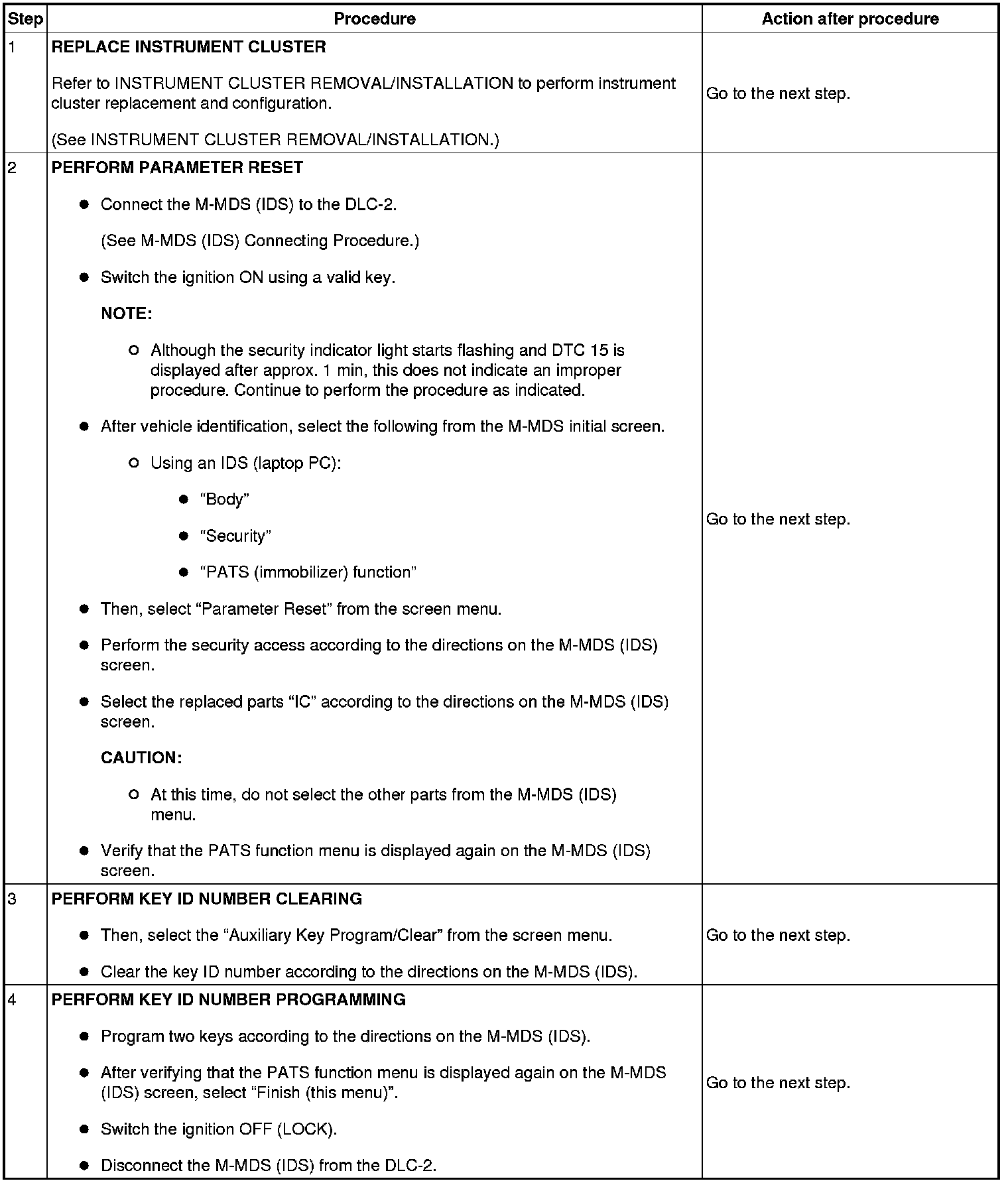 No.7 Programming Procedure Due to Simultaneous Replacement of Immobilizer System-related Parts (PCM and Instrument Cluster)