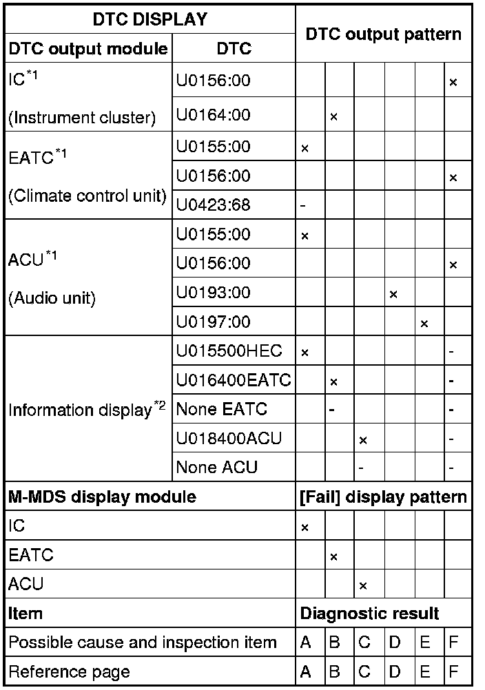 Cross (x): Communication error-related DTC and failed module Hyphen (-): Error signal-related DTC may be indicated