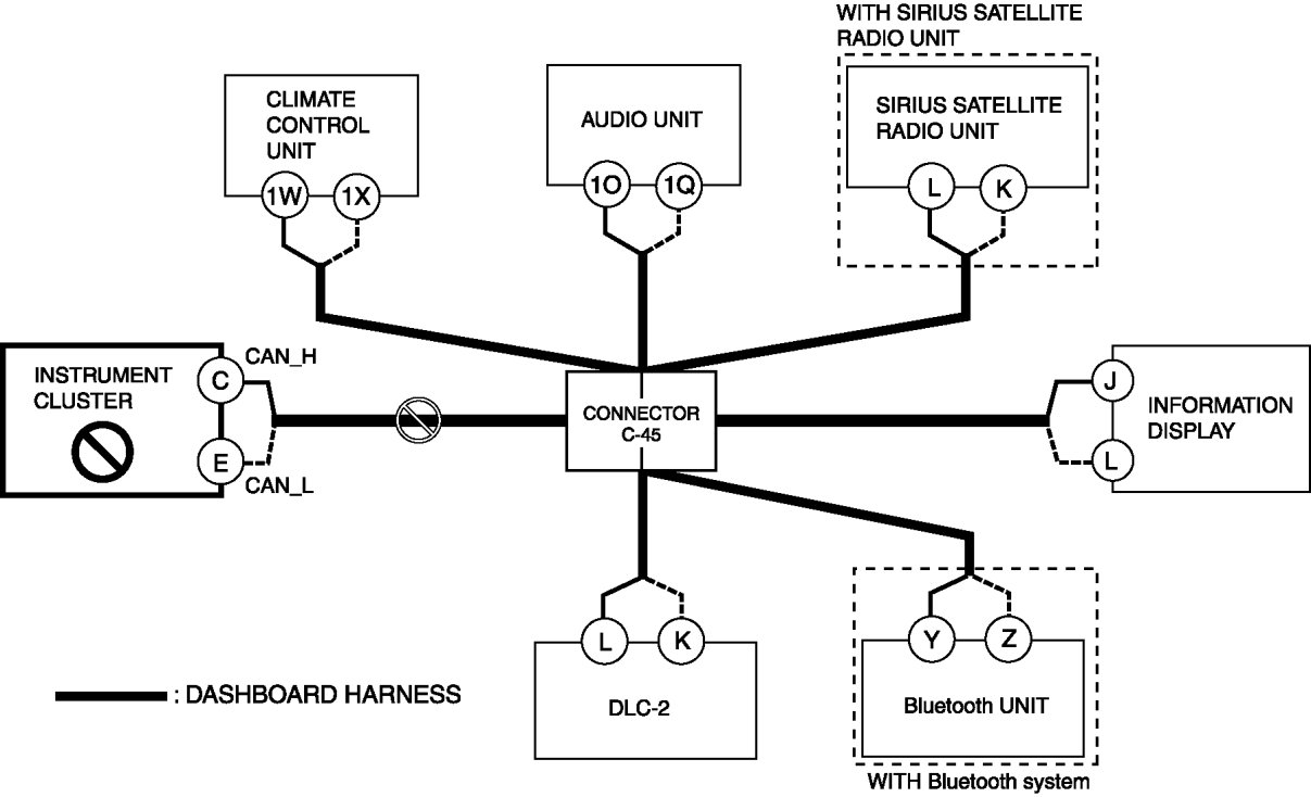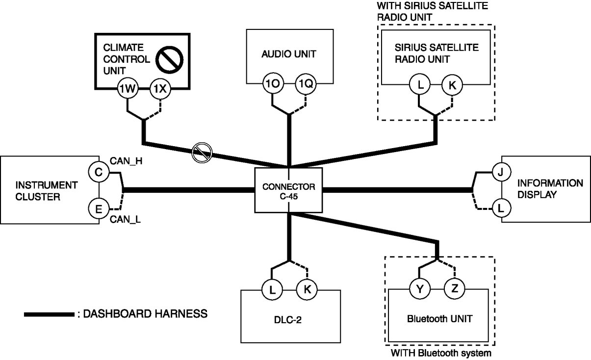 - Open circuit in wiring harness between SIRIUS satellite radio unit and connector C-45