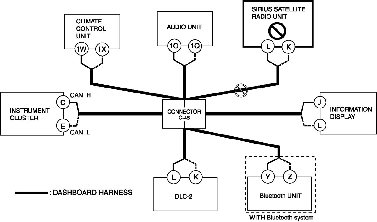 - Wiring harness between Bluetooth unit terminal Z and connector C-45