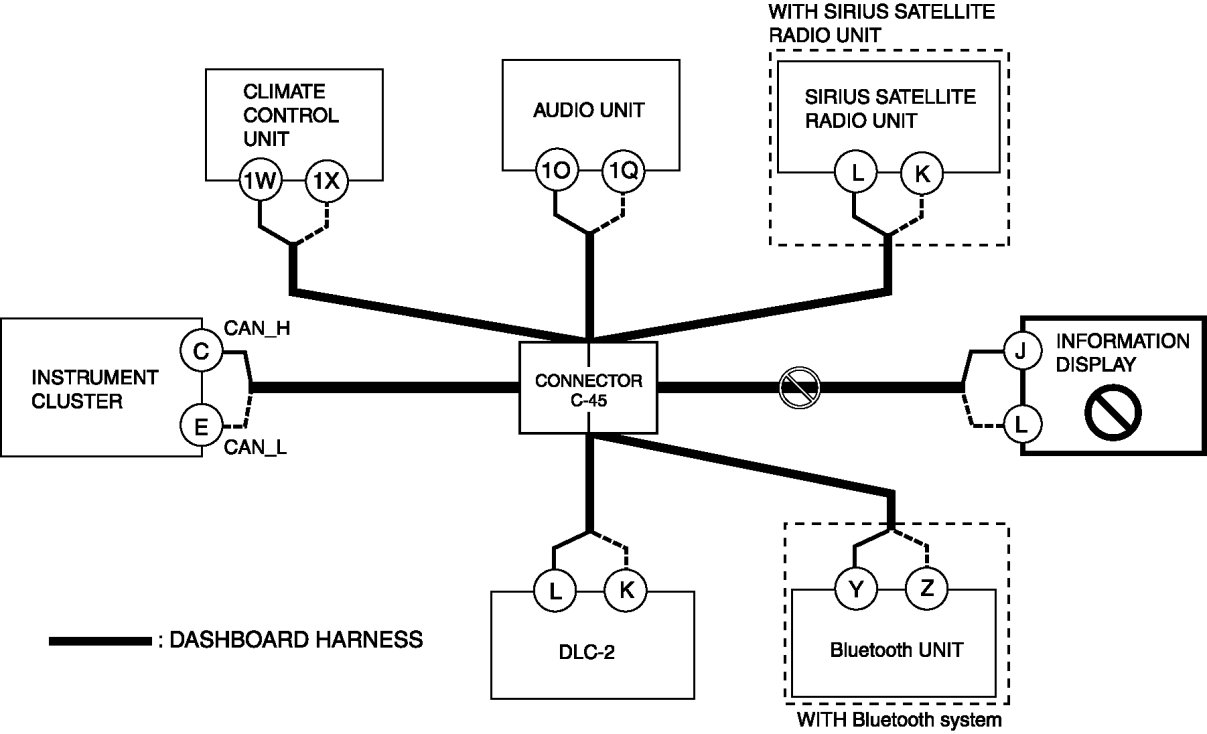 - Wiring harness between information display terminal J and connector C-45