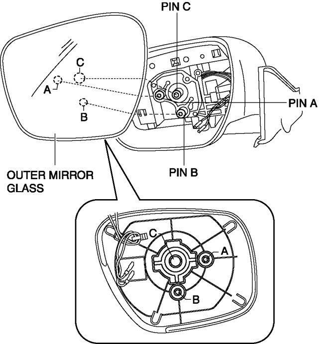 Connect the heated outer mirror connector (vehicles with heated outer mirror).