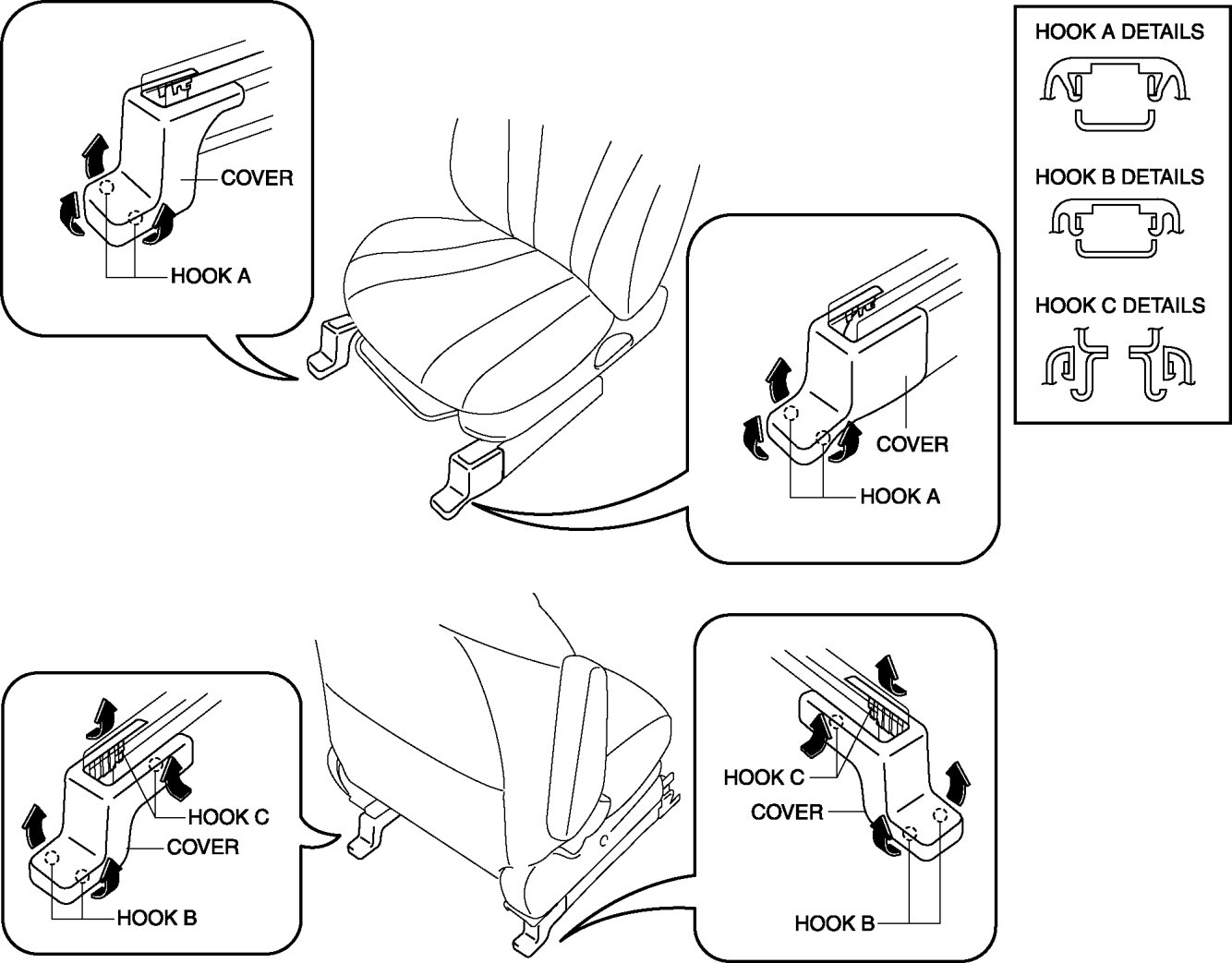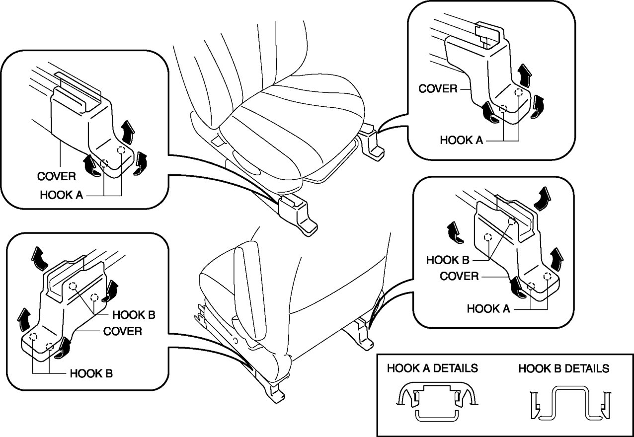 - When performing the procedure with a front seat removed from the vehicle, perform the procedure on a clean rag so as not to damage or soil the seat.