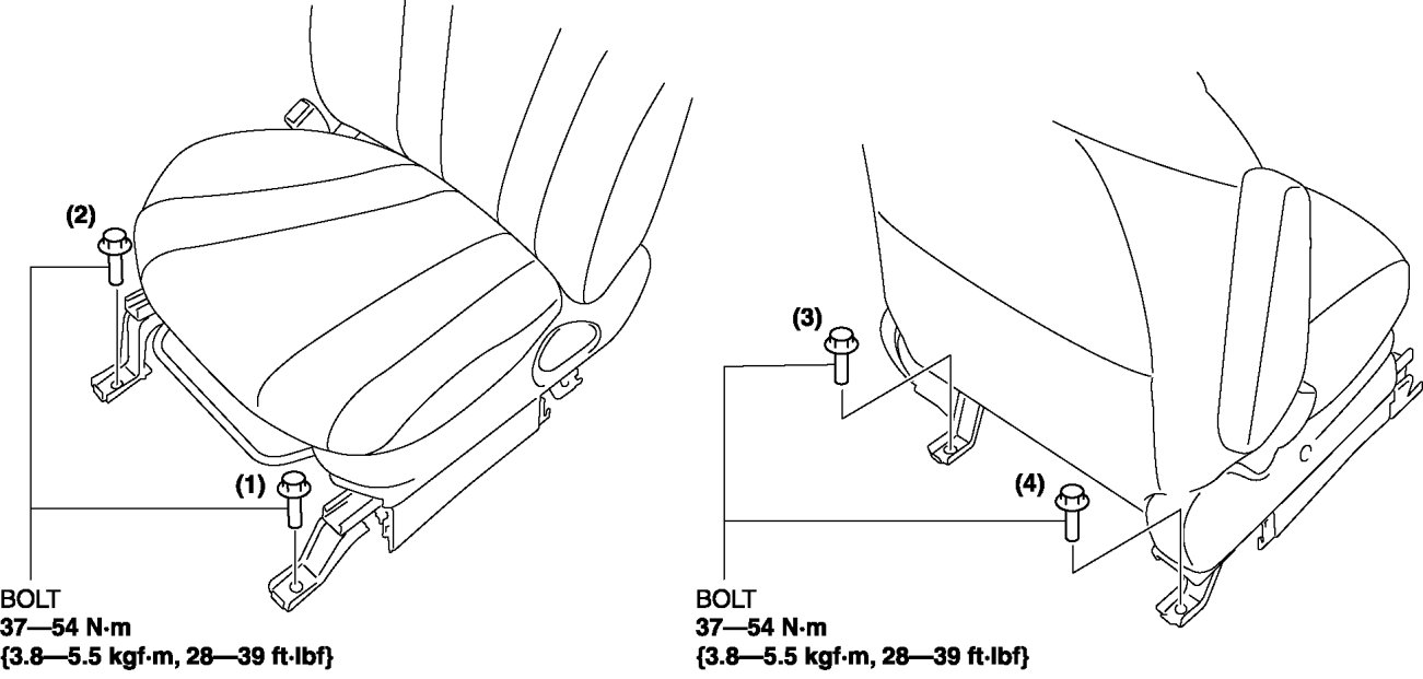 8. Remove the bolts in the order of (1), (2), (3), (4) shown in the figure, then take the front seat out from the opened front door.