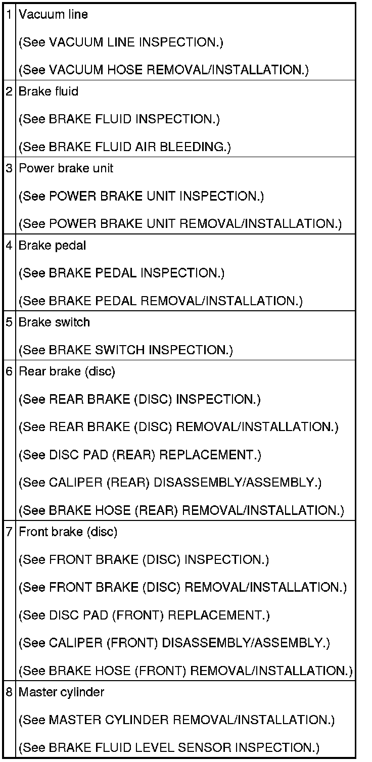 CONVENTIONAL BRAKE SYSTEM LOCATION INDEX