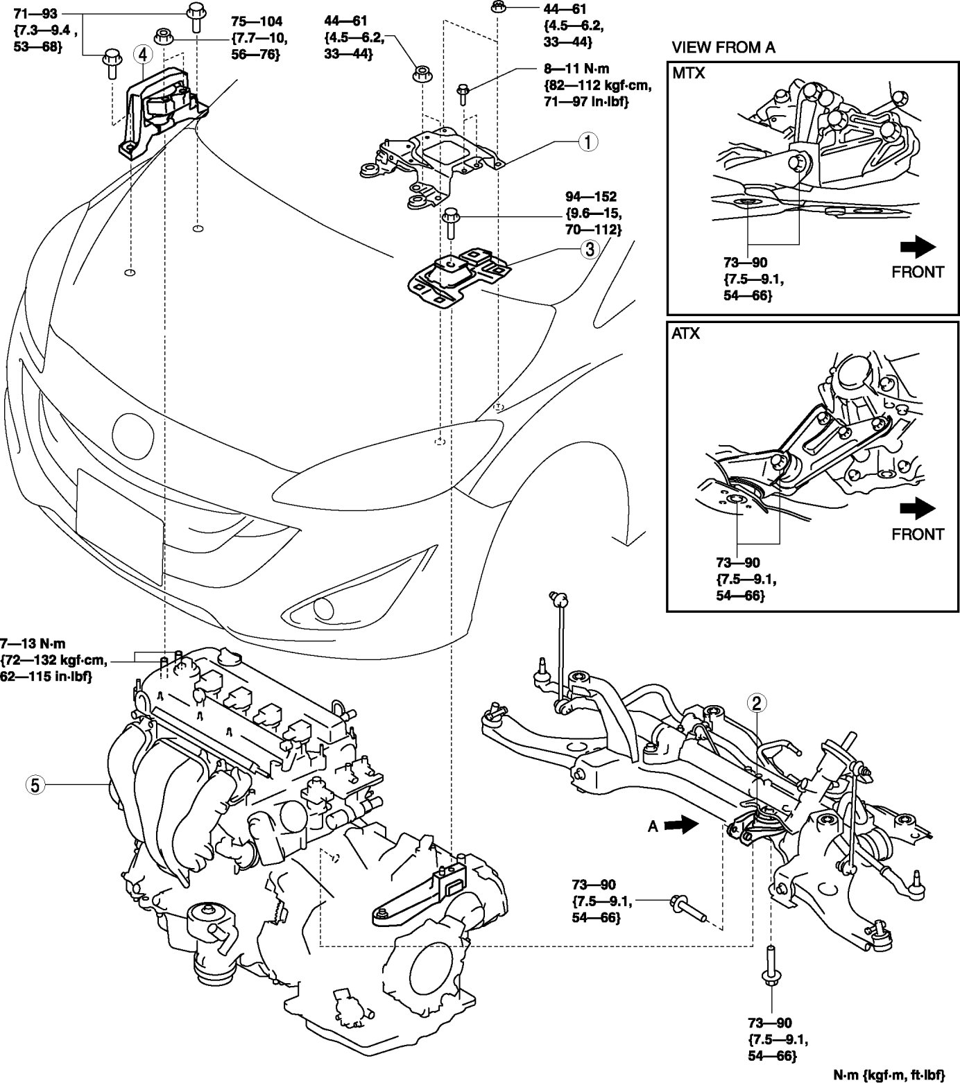 - 94-152 Nm {9.6-15 kgf-m, 70-112 ft-lbf}