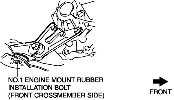 1. Loosen the No.1 engine mount rubber installation bolt (front crossmember side) shown in the figure.