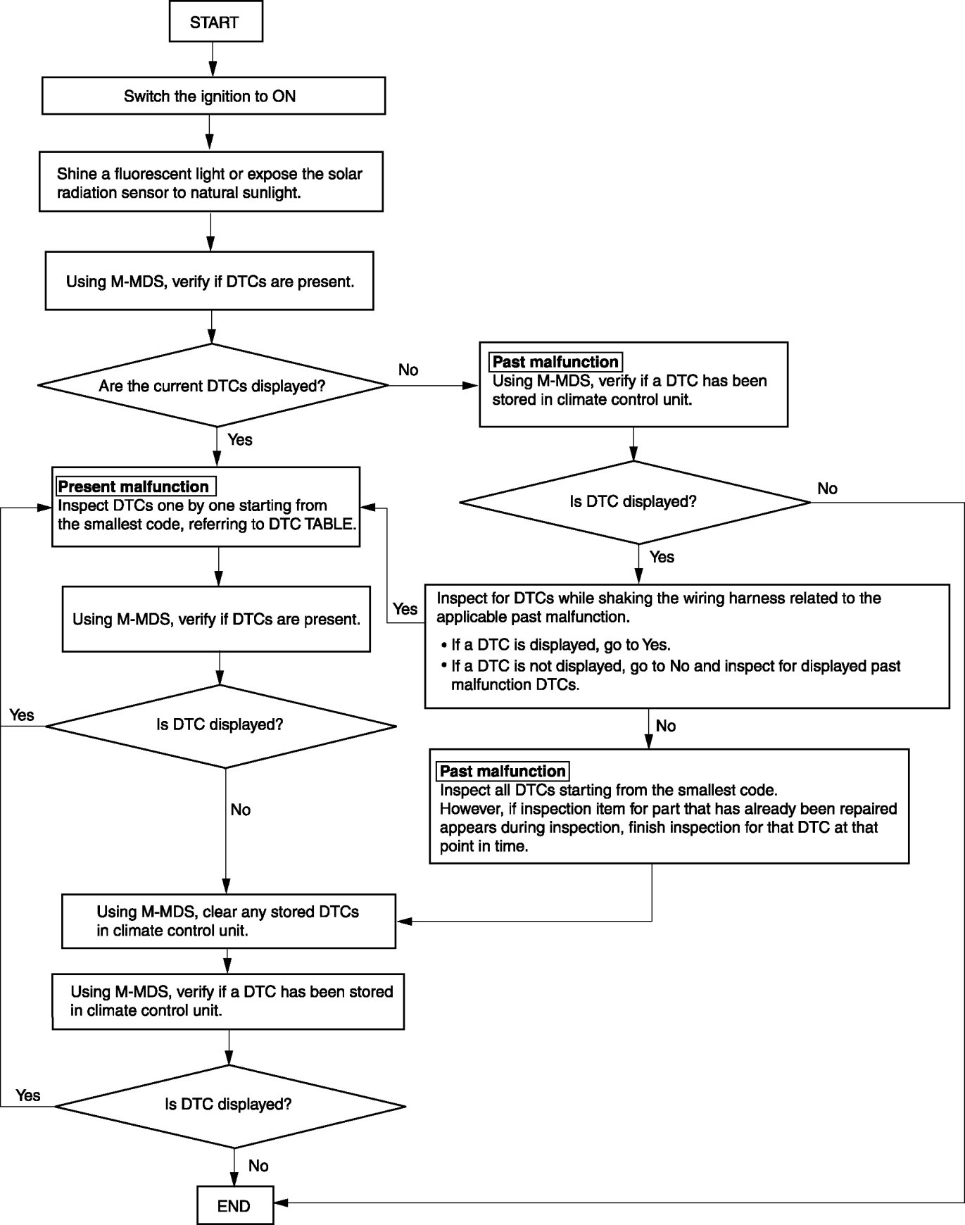 - When DTCs of the present malfunction are no longer output after present or past malfunctions or both have been repaired, be sure to clear the past malfunction from memory to prevent repair of malfunctions that have already been repaired.