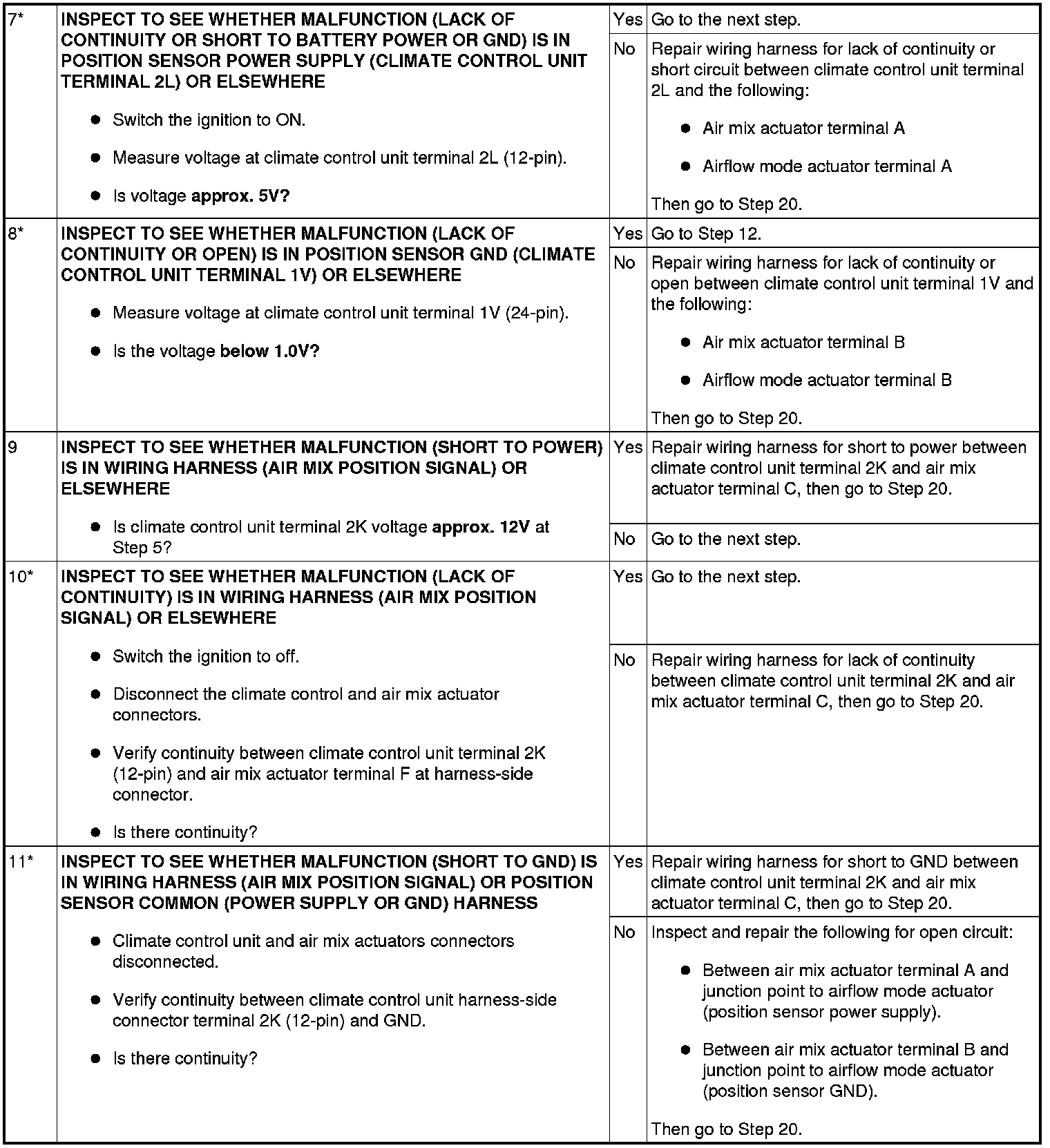 - When performing an asterisked (*) troubleshooting inspection, shake the wiring harness and connectors while performing the inspection to discover whether poor contact points are the cause of any intermittent malfunctions. If there is a problem, inspect to make sure connectors, terminals and wiring harnesses are connected correctly and undamaged.