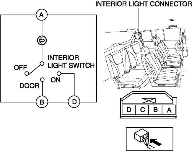 3. Verify that the continuity between the interior light terminals is as indicated in the table.